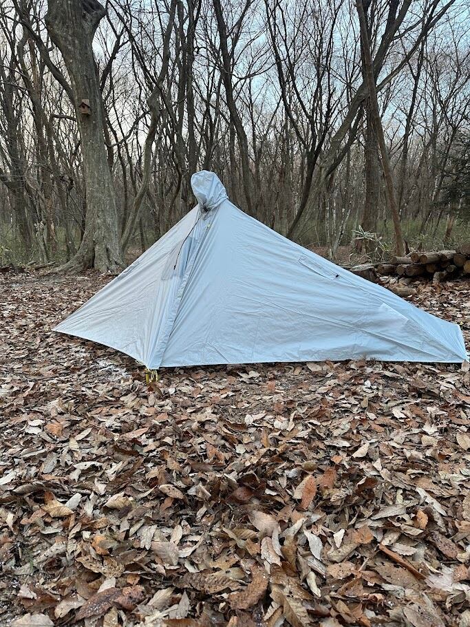 高さをあげて設営する場合はカーボンポール124cmもしくは短いポールの場合でも下に何か(木や岩などを)あてがってあげれば高くすることができそのスペースが広くなります。