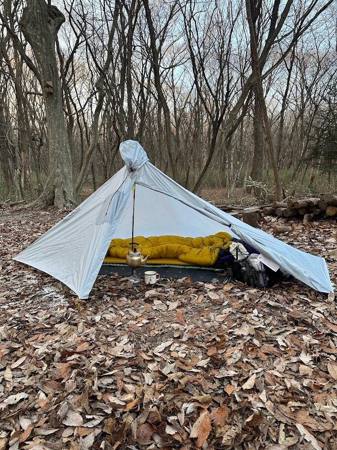 写真は2025年12月の年末に那須でやったときの写真です。朝晩はマイナス-3℃位になる季節ですが全然いけました。注意点は、結露対策です。設置を低くしているので幕との距離が近く結露ができやすい。